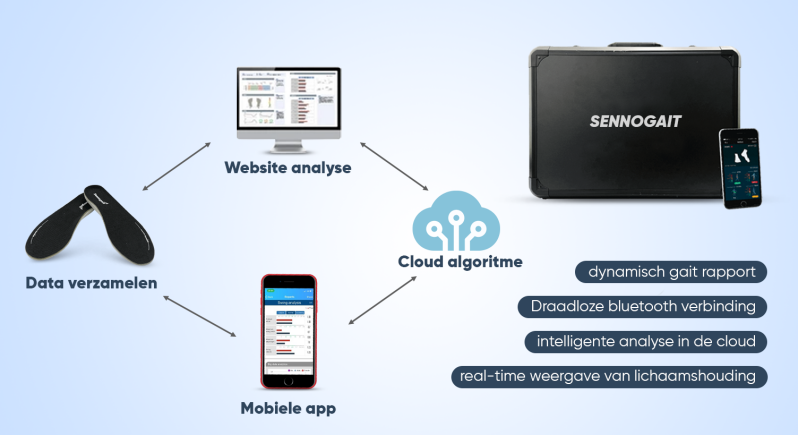 - Één licentie die 5 jaar geldig is om gebruik te kunnen maken van de app waarmee u het looppatroon kunt analyseren.